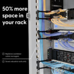 One 24-pack replaces 48 screws and 12 cable managers, freeing up up to 50% more usable rack space.